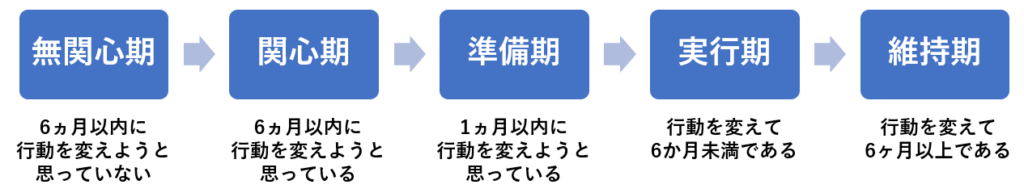 「無関心期」→「関心期」→「準備期」→「実行期」→「維持期」